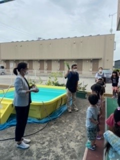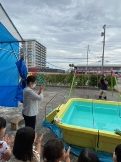 皆も一緒に水の神様に安全にプールに入れるようにお祈りしました。