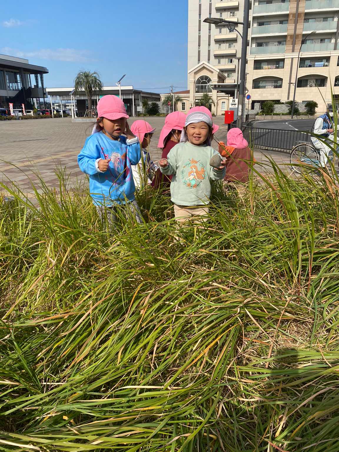 子ども達は、いろんなものを探してまるで探検隊?のようです。「ススキかなぁ?」 「この、お花はなぁ~にぃ?」