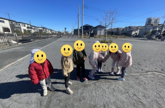 今日は、天気も良かったので、そよかぜ組とあおぞら組は駅の方まで一緒にお散歩に行きました !(^^)!