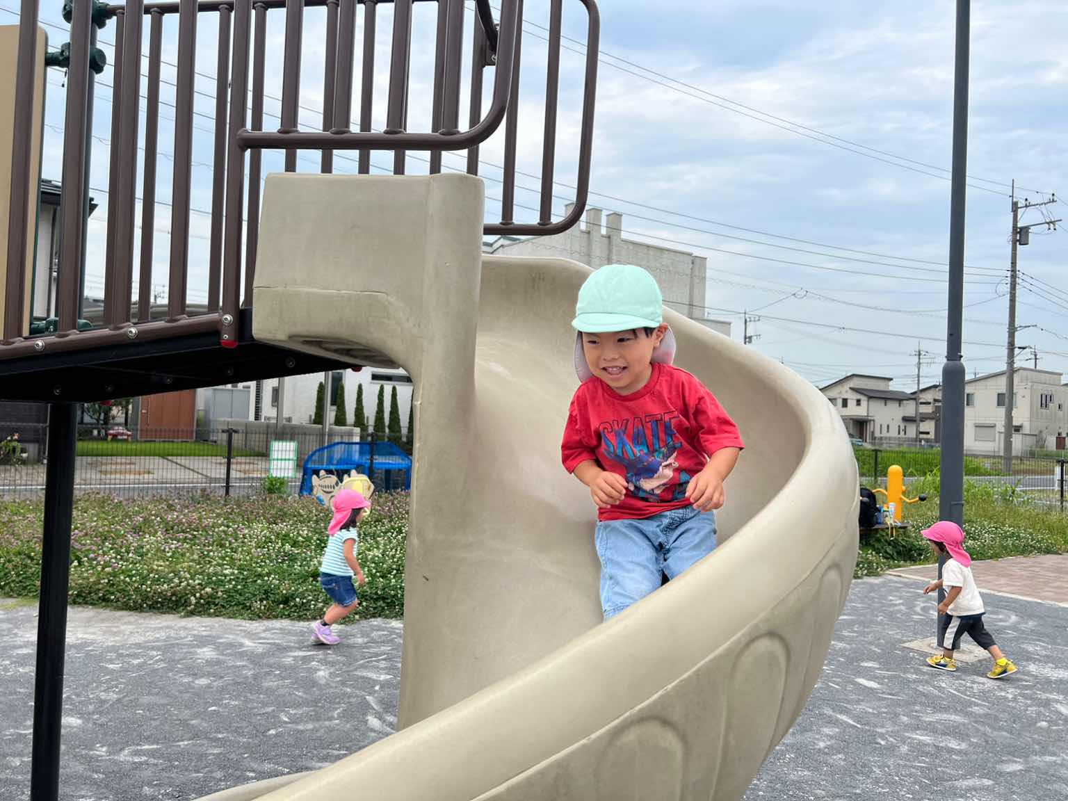 「にじ組・あおぞら組」さんは、近くの公園にお散歩して一緒に楽しく走り回っていっぱい仲良しになりました!
