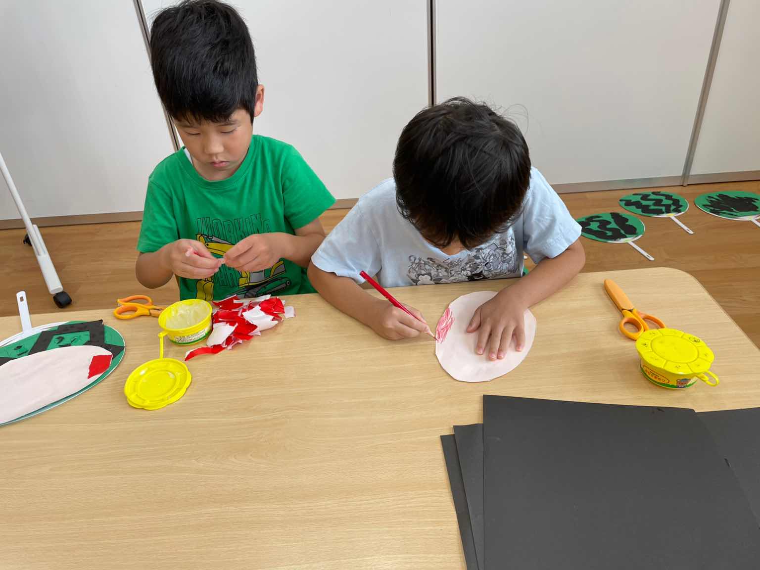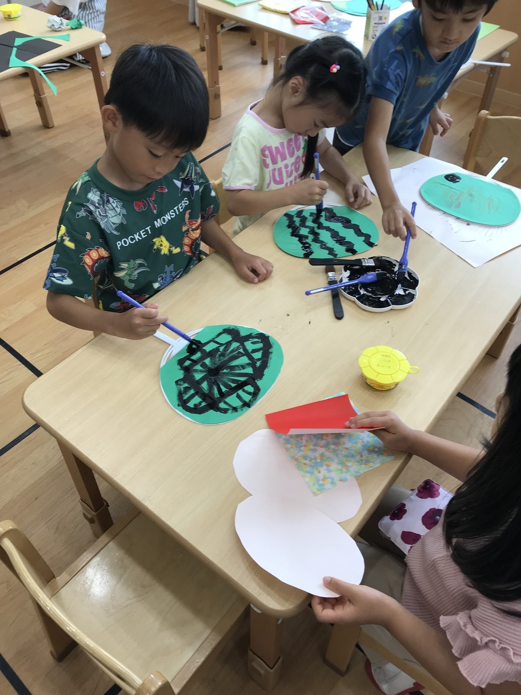 夕涼み会の案内のポスターを作ったり、うちわに色を付けたりと準備が始まりました(^▽^)/