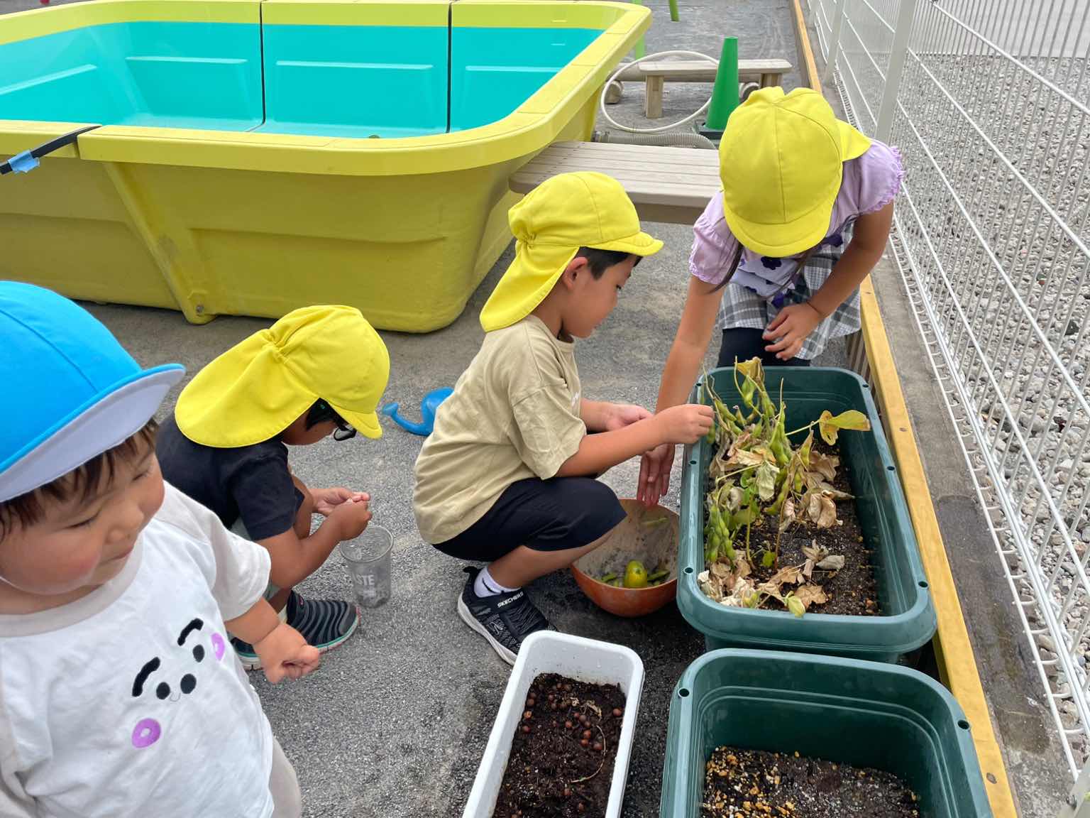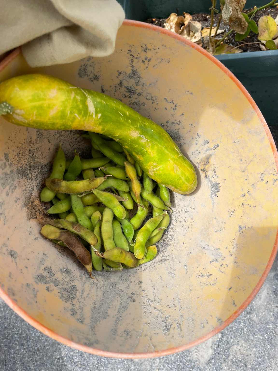 「ほし組」さんの育てていた、夏野菜の「きゅうりと枝豆」。