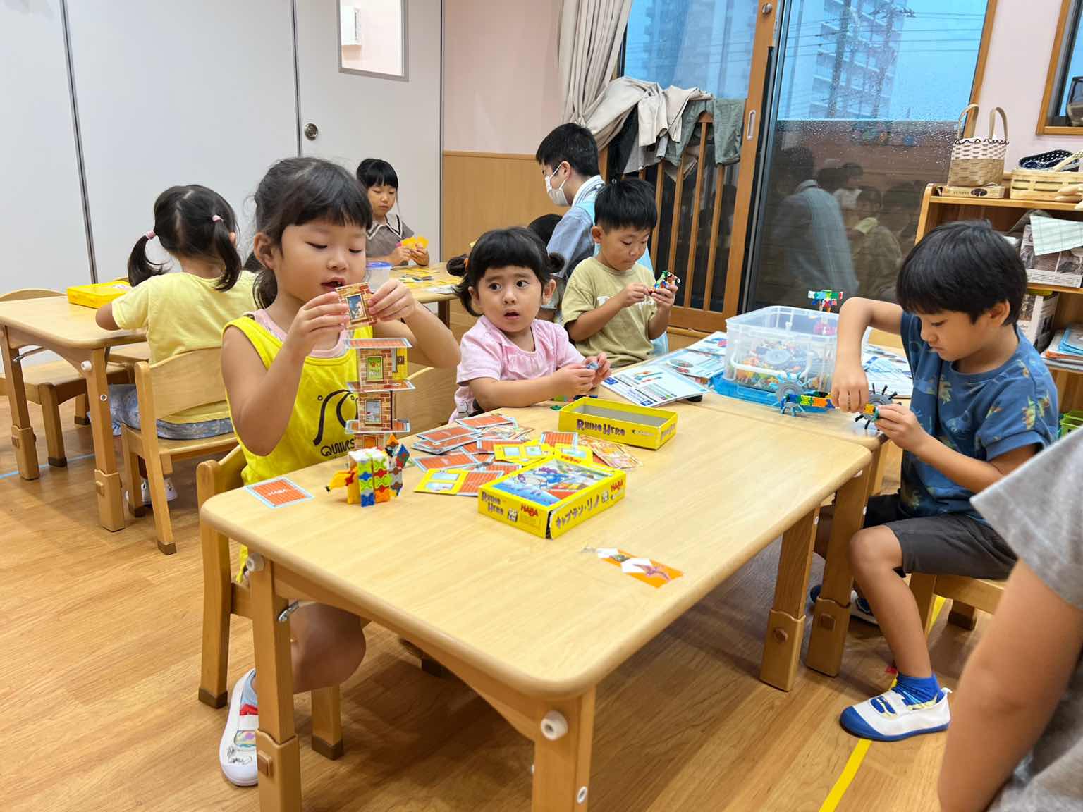 2023.9.8ブログ やっぱり、お兄ちゃん・お姉ちゃんだょね! 今日は朝から、台風の影響で雨風がひどく、とても外で遊べる様な状況じゃありません! 保護者の皆様のご理解ご協力もあって、とても安全な活動が出来ました(^▽^)/ 今日は、「にじ組」さんと「ほし組」さんが一緒の活動をし、 お兄ちゃん・お姉ちゃんとたくさん遊んでお昼の給食も一緒に食べて、「にじ組」さんがお昼寝する時は、皆でおやすみの「トントン」をしてくれました! 前の記事 次の記事