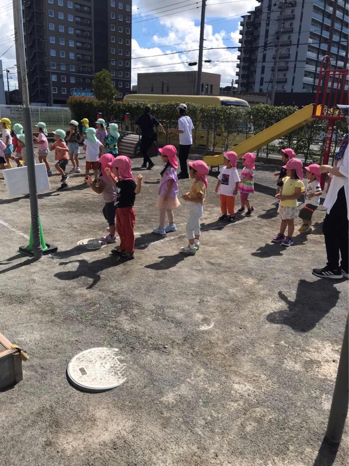 今日は、以上児クラスのお友達は、園庭に出て運動会の練習をしました!