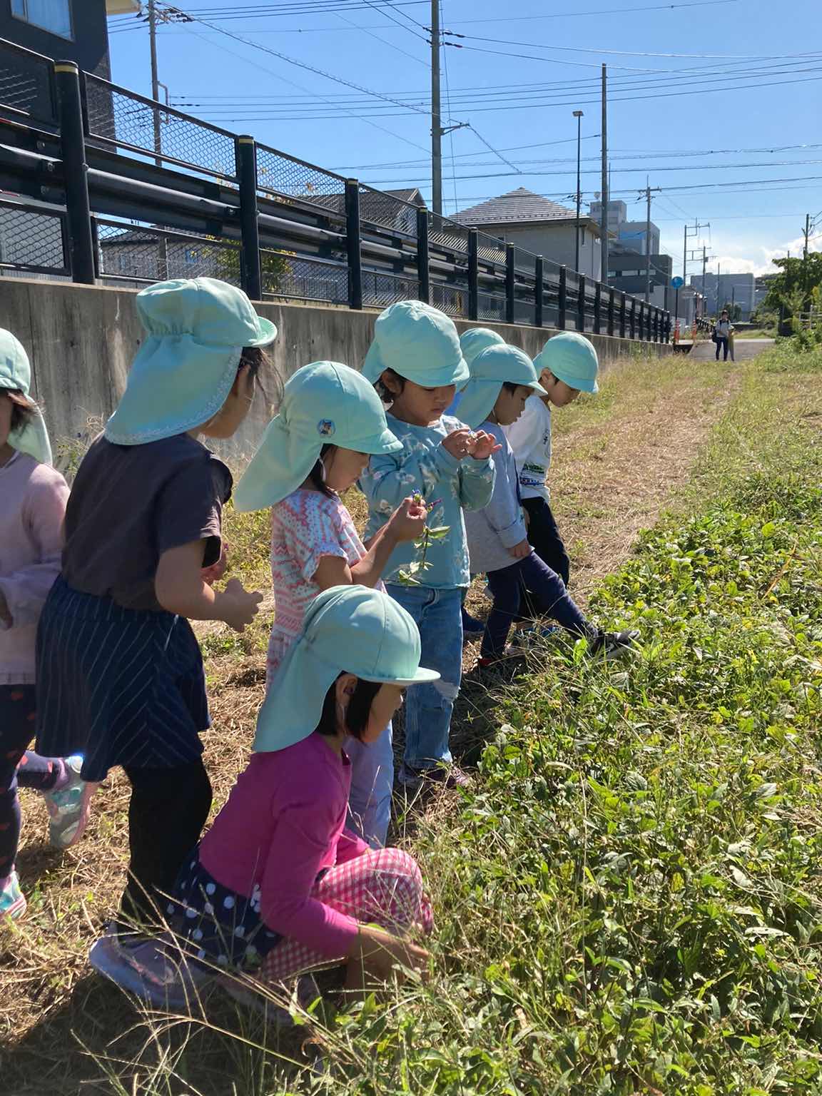 「あおぞら組」のお友達は、近くの農道までお散歩に出かけました(^▽^)/