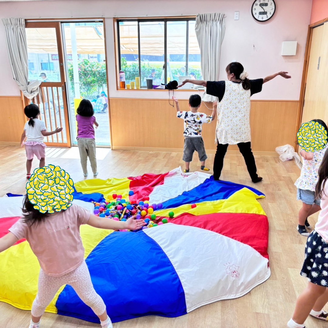 【袖ヶ浦ユーカリ保育園】あおぞら組(4歳児)パラバルーン遊び!最高の笑顔!😆