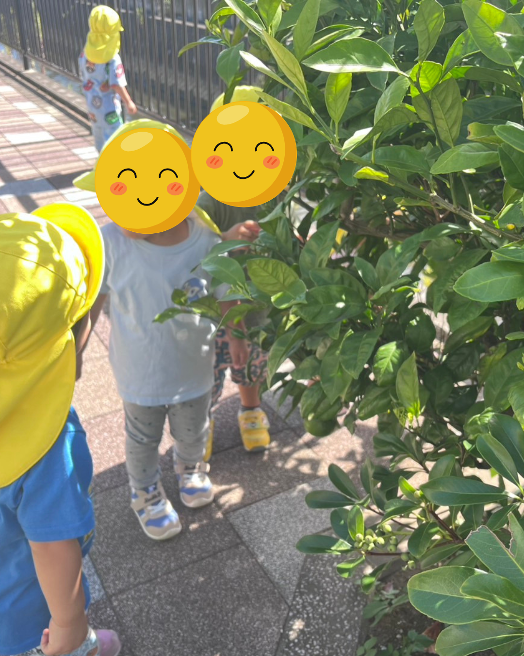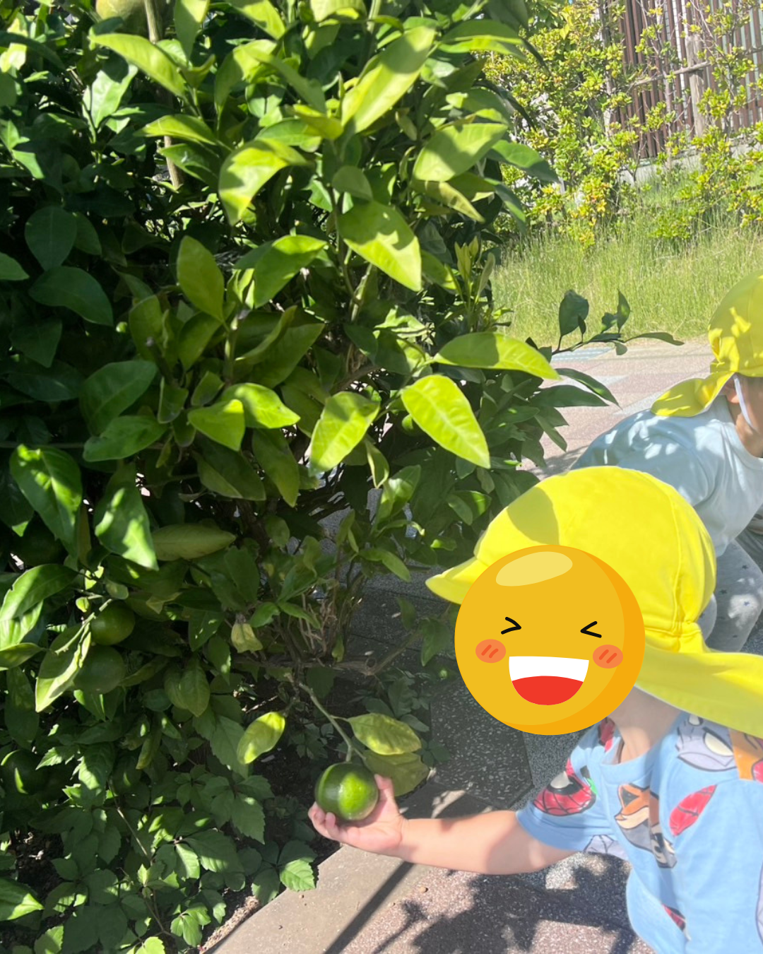 みんなが知っているみかんと違って、緑色のみかんに不思議な顔をしているお友だちもいました🍊