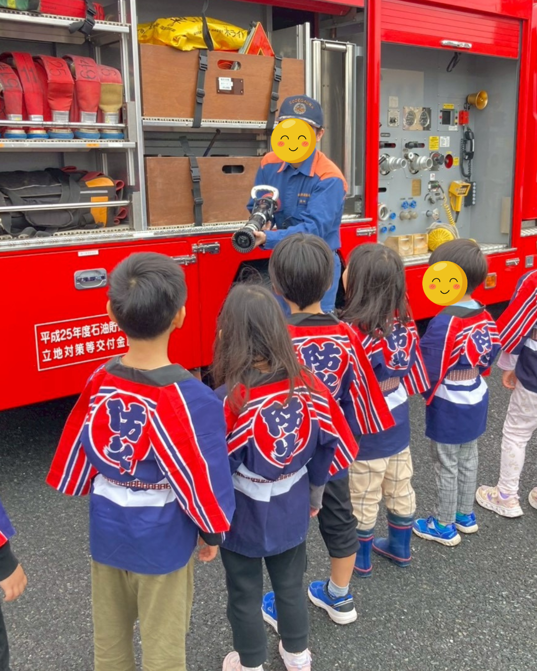 先日、袖ケ浦市消防本部の方に来ていただき、幼年消防を行いました😊