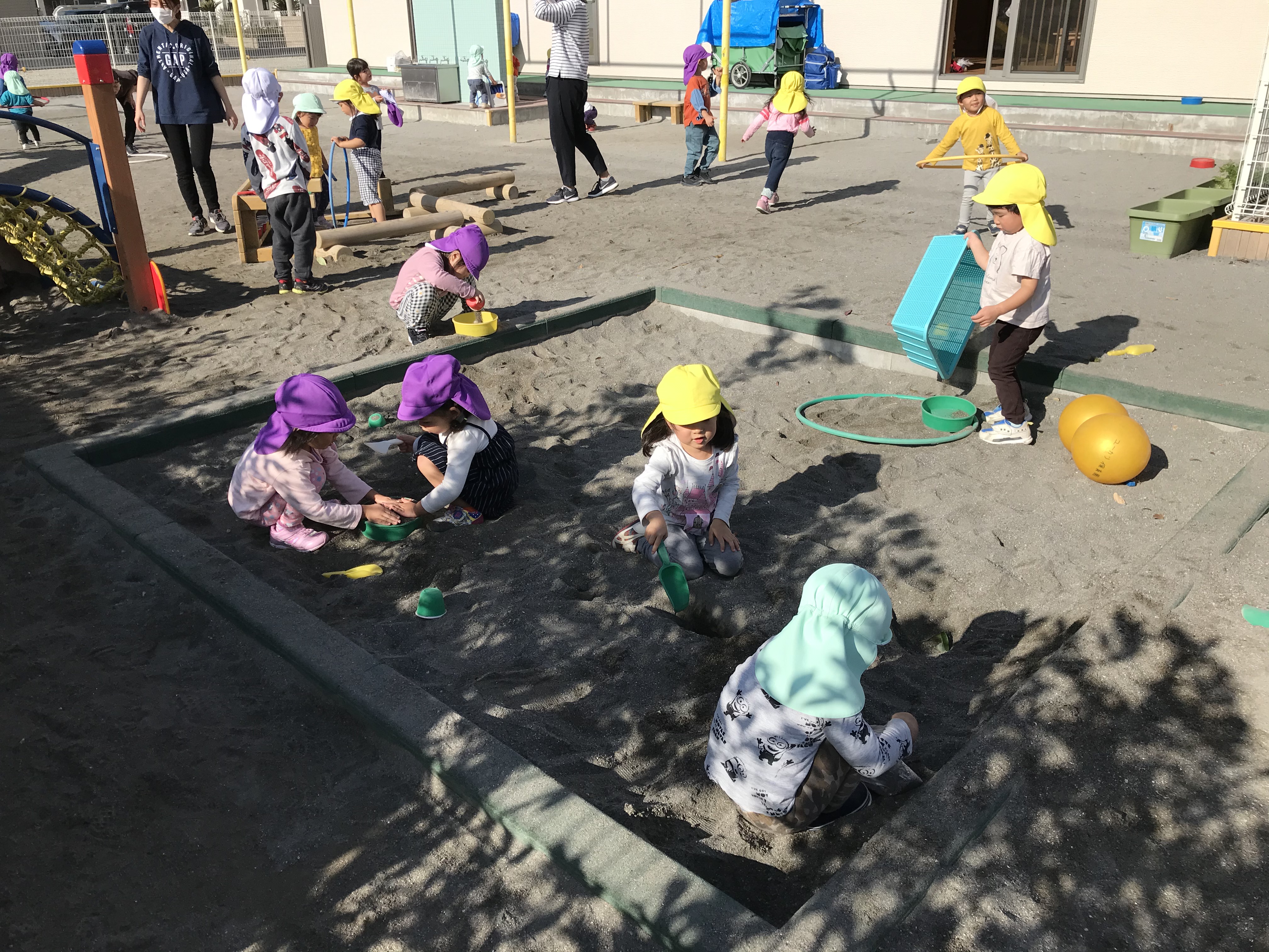朝晩は冷えるのですが、今日はいつもより薄着になって、園庭で遊びました(⋈◍>◡<◍)。✧♡