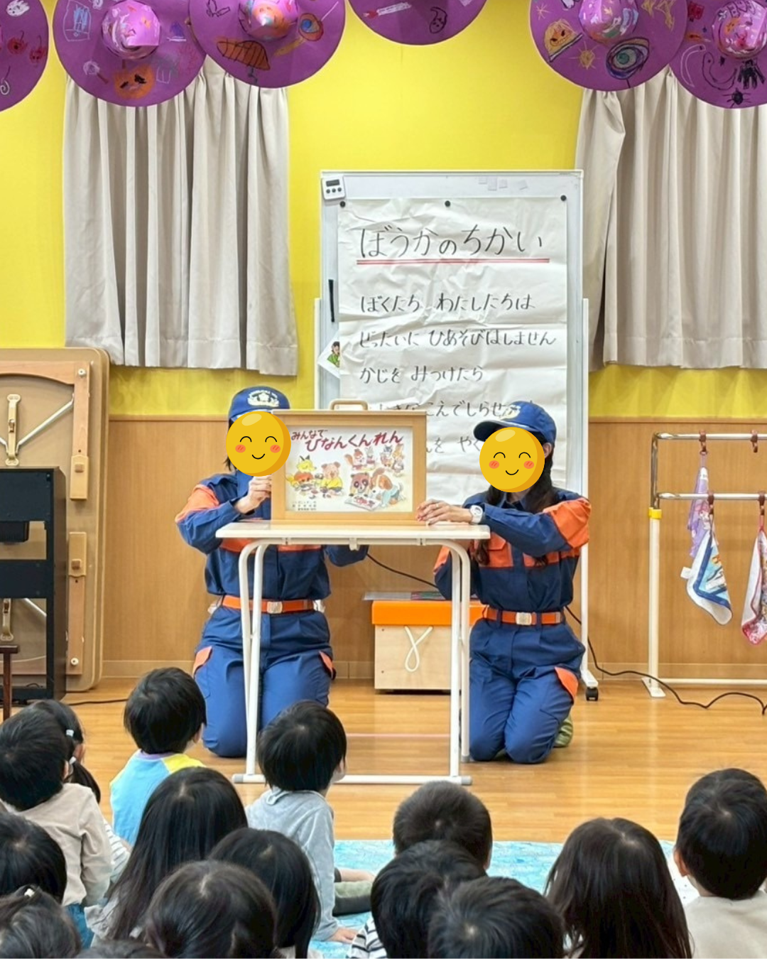 2025.10.21【袖ヶ浦ユーカリ保育園】幼年消防🚒 お世話になります。 袖ヶ浦ユーカリ保育園のブログ担当です! 今日のテーマは 【幼年消防🚒】です!! 先日、袖ケ浦市消防本部の方に来ていただき、幼年消防を行いました😊 幼年消防では防火の誓いをみんなで誓いました! 『ぼうかのちかい』 ぼ -