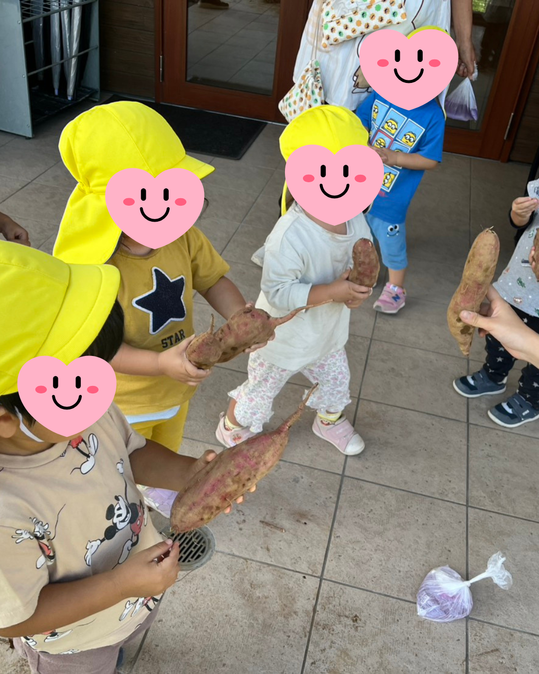 2025.10.15【袖ヶ浦ユーカリ保育園】ニコニコ笑顔で😆 お世話になります。 袖ヶ浦ユーカリ保育園のブログ担当です! 今日のテーマは 【ニコニコ笑顔で😆】です!! 先日、園庭遊びを終え戻ってくると、お兄さんお姉さんが掘ってきたさつまいもがあり、2歳児のお友だちは手にとって重さや手触りを楽しみました😆 「大きいね -