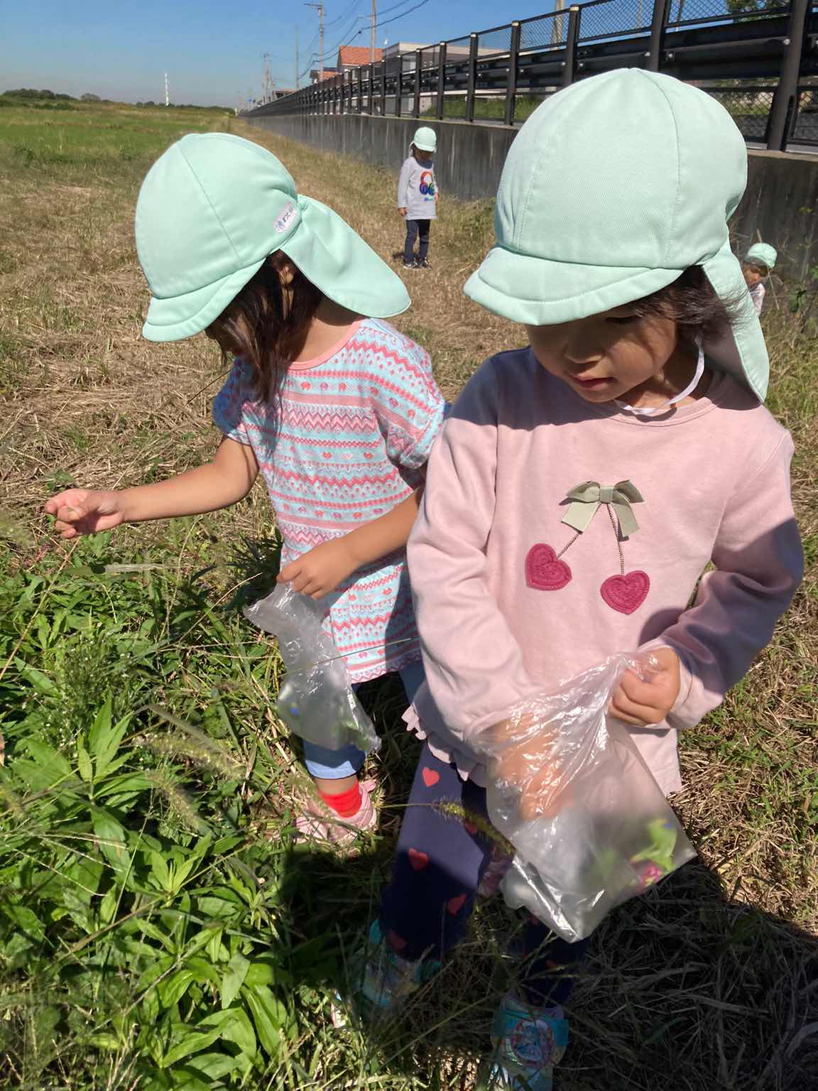 2023.10.16何がいるかなぁ~? 今日は、日差しも穏やかで、風などもなくとても過ごし易い日になりました! 「あおぞら組」のお友達は、近くの農道までお散歩に出かけました(^▽^)/ 今の季節、どんな生き物がいるのか、どんな植物があるのかみんなでたくさん見つけてみました~💦 -