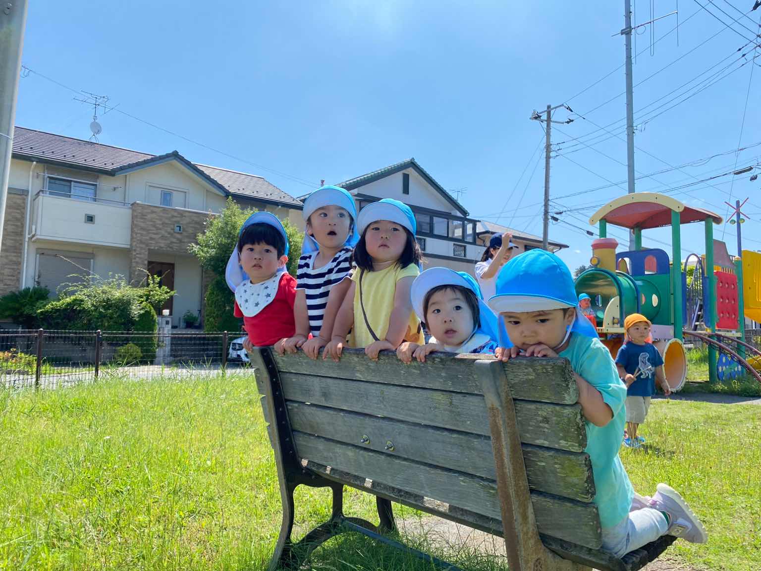 2023.06.16今日は、一緒に公園に! 今日は、「きぼう組」と「そよかぜ組」のお友達は、一緒に近くの公園までお散歩に出かけました! 公園では、電車を見たりブランコしたり、追いかけっこをしたりとたくさん遊んできました(o^―^o)ニコ もう、お腹すいたから一緒に給食食べよ~ょ🤤 -